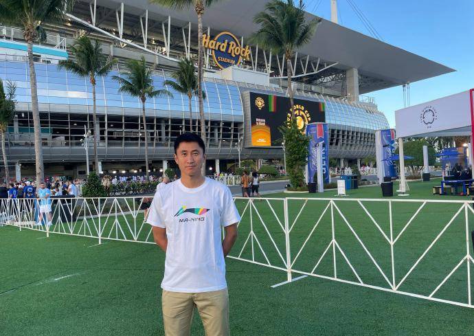 图为马宁在世俱杯场馆外留影。图片来自马宁社交媒体账号